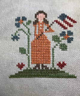 I also worked on Quaker Street by Marjorie Massey. It is my 25/7 piece and I am stitching three strands a day on this one. Here is my progress: