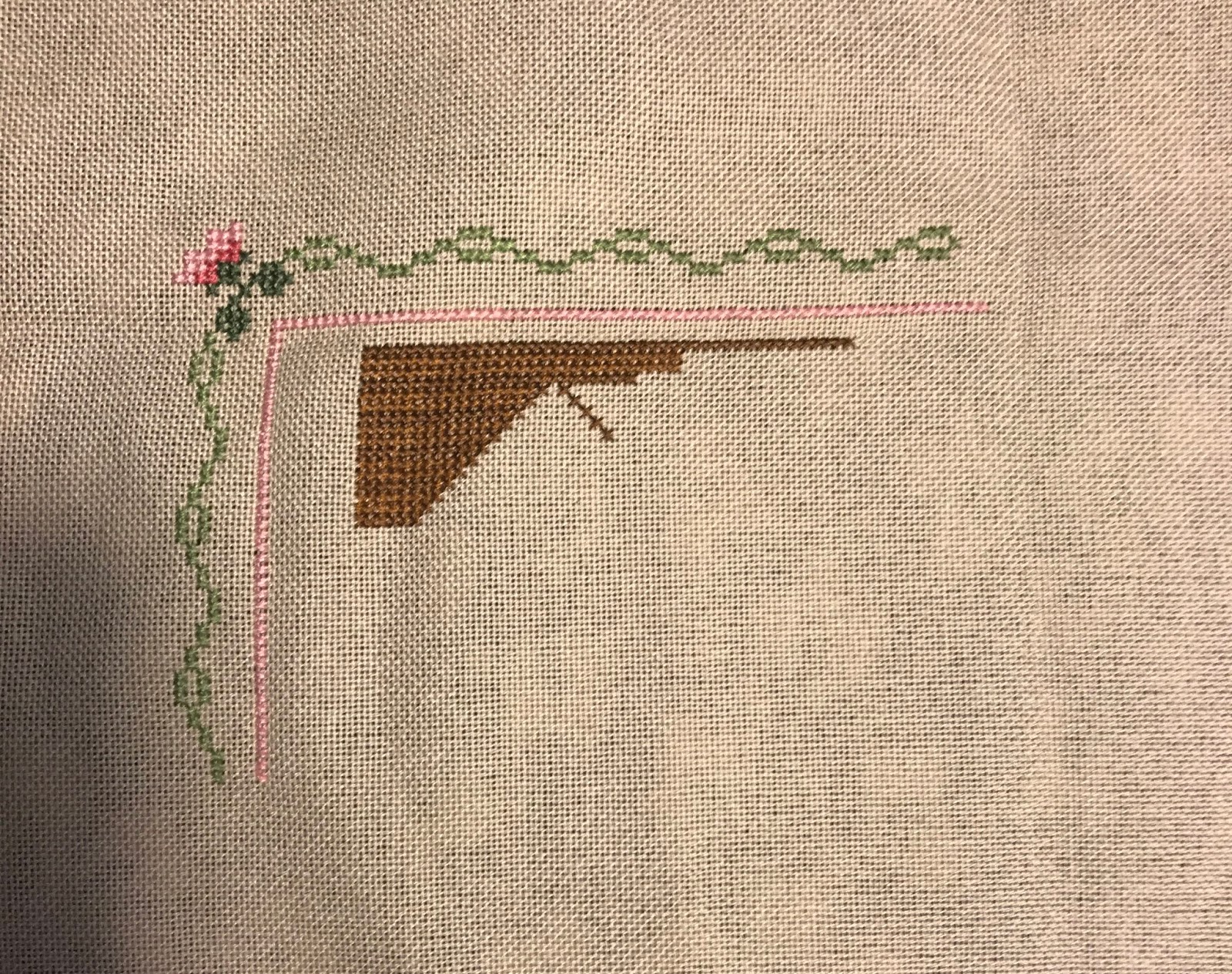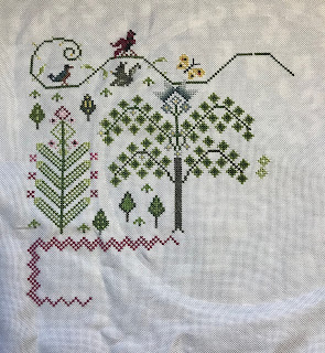 The last piece I stitched on was my birthday start, ‘The Red House Sampler’ by Brenda Keyes. I only made a small start, but a start nonetheless!